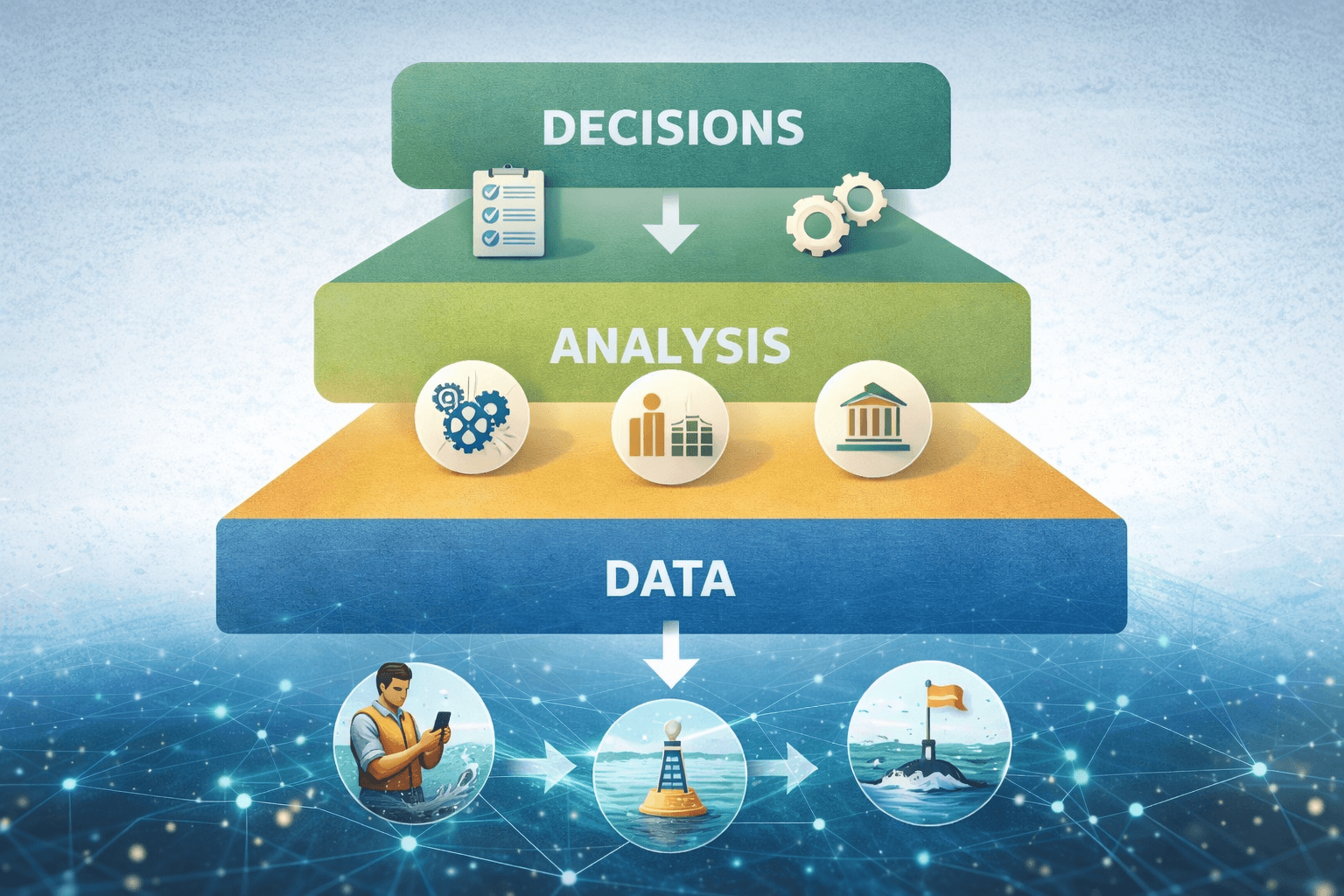 طوّرت يمن أزرق نظام دعم قرار يربط الرصد البحري المجتمعي بالتشخيص متعدد القطاعات، لتحويل البيانات إلى تدخلات قابلة للتنفيذ.
